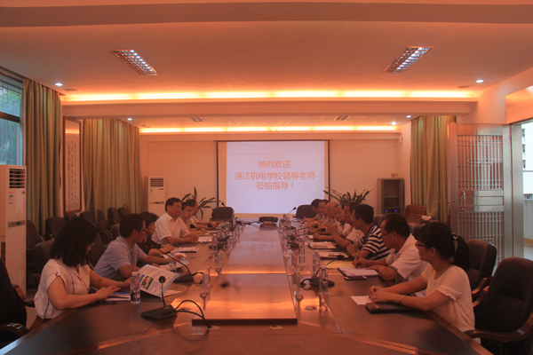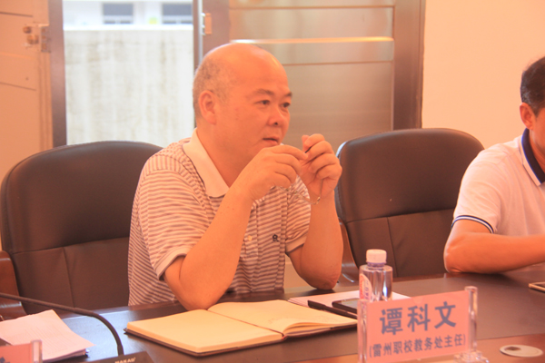 湛江机电学校校长林教盛,我校负责全面的副校长陈振中、负责教学的副校长黄培彬、副校长周挺、教务处主任谭科文,招生办主任郑堪龙参与会议。